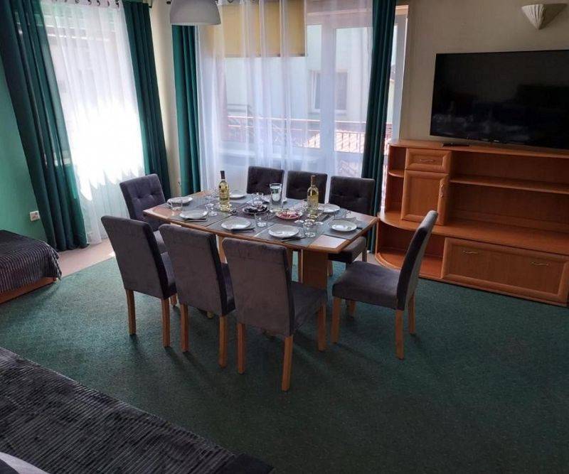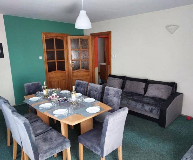 Apartament dla 9 osób z 4 łóżkami pojedynczymi, 1 łóżkiem podwójnym i 2 rozkładanymi sofami. W apartamencie jest jedna łazienka.