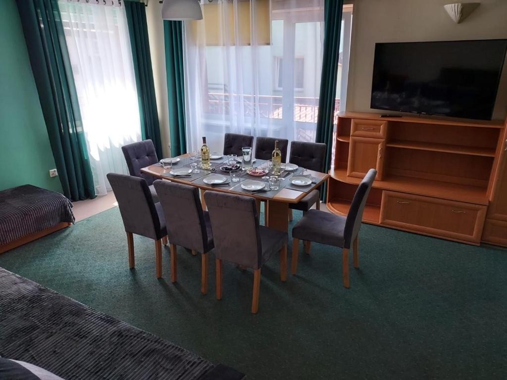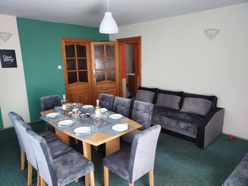Apartament dla 9 osób z 4 łóżkami pojedynczymi, 1 łóżkiem podwójnym i 2 rozkładanymi sofami. W apartamencie jest jedna łazienka.